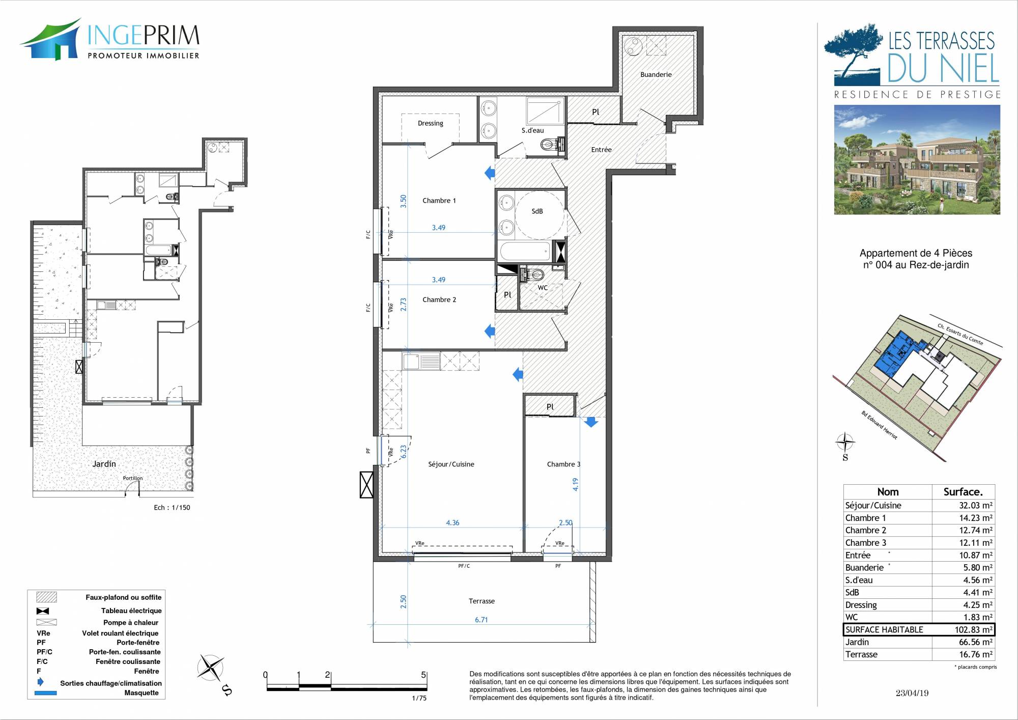 HYERES, en direction de la Tour Fondue, 4 pièces avec terrasse et jardin dans résidence haut de gamme