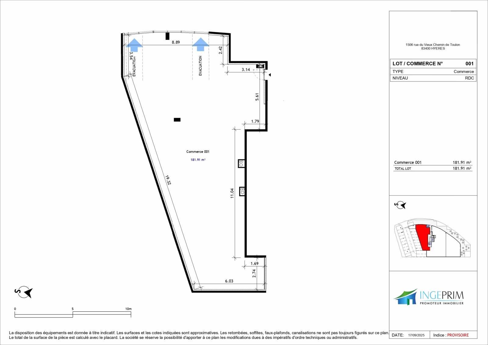 Implantez votre activité au sein du programme Carré Ouest à Hyères, un secteur dynamique en plein essor. Ce projet propose des locaux commerciaux en rez-de-chaussée, avec des surfaces modulables de 180 à 300 m², bénéficiant de terrasses, de parkings réservés et d’une visibilité optimale depuis les axes principaux.